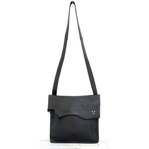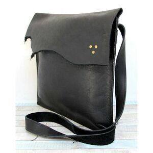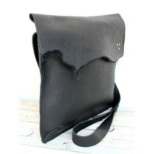 MURKA RAW EDGE BLACK THICK GENUINE LEATHER FLAP SHOULDER BAG X-BODY MESSENGER