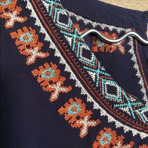 MUR MUR Blue Embroidered Short Sleeve Shirt Dress size Small. Great condition, no signs of wear. 100% rayon. Great for hotter climates or to layer with other items! Perfect to throw over a bathing suit too!