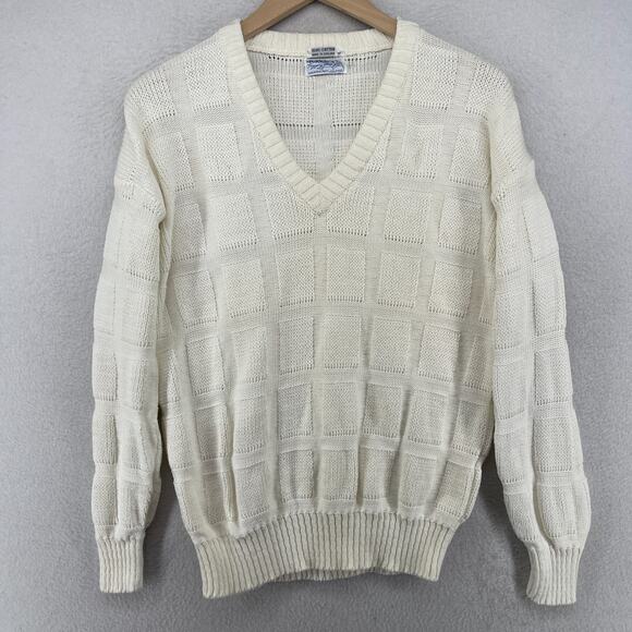MURRAYS TOGGERY Sweater Women M Textured Windowpane Cotton Off White VTG England