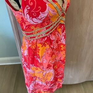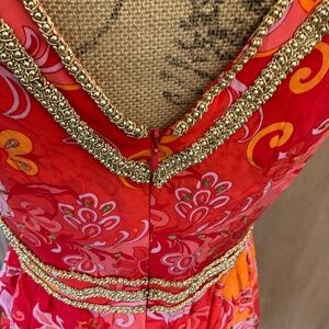 MUSE Boston Proper Mod Y2K pucci inspired retro floral silk Lotus dress coral 6