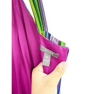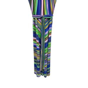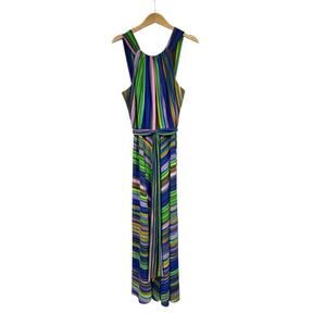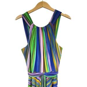 MUSE Women’s Striped Halter Maxi Colorful Rainbow Jersey Dress Size 12 Party