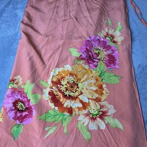 MUSE Women’s Sz 14 100% Silk Floral Print Wrapped Tied Lined Maxi Skirt Pink Ora