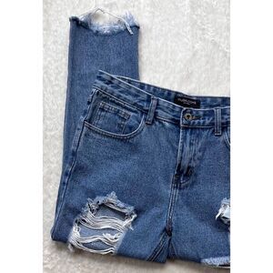 MUSELOOKS High Rise Distressed Raw Hem Cropped Jeans, Size Small