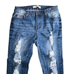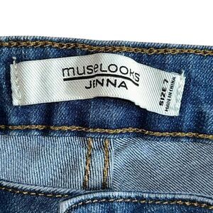 MUSELOOKS Jeans Size 7 Jr. Women's Skinny Stretch Mid Rise Raw Hem Whiskers
