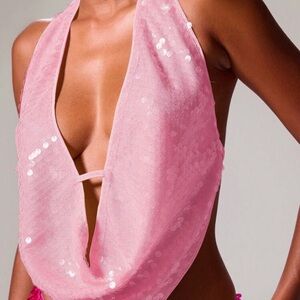 MUSERA Halterneck Draped Front Low Back Sequin Sleeveless Top Ibiza Sexy