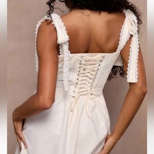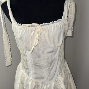 MUSERA Picot Trim Corseted Summer Mini Dress Lace Trim Sexy Cute Sz L