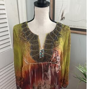 MUSHKA SIENNA ROSE Womens Large Colorful Chiffon Beaded Retro Y2K Fairy Grunge