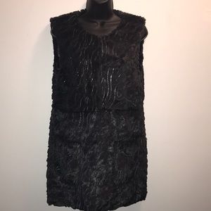 Dark gray faux fur sequin embellished vest from MUSHKA by Sienna Rose. Size medium. New without tag. Has split neck, sleeveless, front hook & eye closure, 2 front patch pockets.