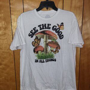 MUSHROOMS Shirt LARGE Short Sleeve See The Good In All Things Graphics White D1