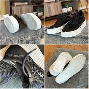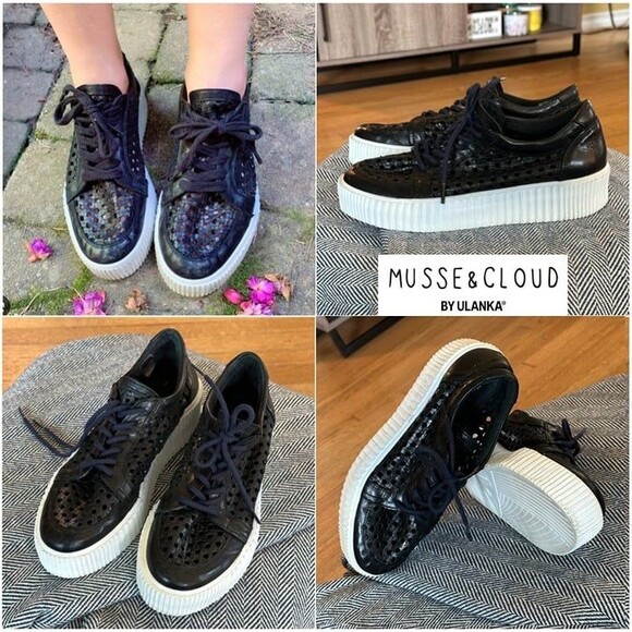 MUSSE & CLOUD "Cacey" Black Perforated Leather Flatform Sneakers, size 9.