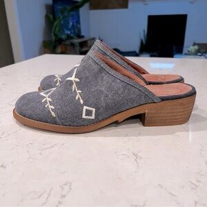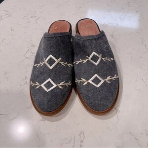 MUSSE & CLOUD Denim Southwestern Embroidered Almond Toe Mules Size US 8