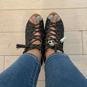 MUSSE & CLOUD BLACK LEATHER WEDGE SANDALS. NEW. SUPER COMFORTABLE INSOLES! WOW