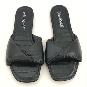 MUSSHOE Slip On Slide Sandals Black Flats Women’s Size 7 NWT