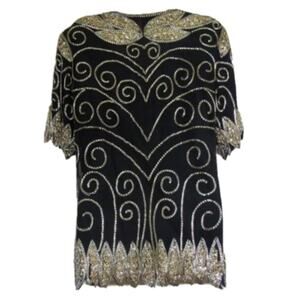 *SEE PHOTO* Vintage Sequins & Silk Art Deco Blouse by Jean for Joseph LeBon