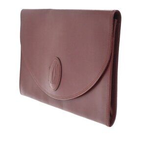 MUST DE CARTIER 2C Logo Clutch Hand Bag Leather Red GHW Italy