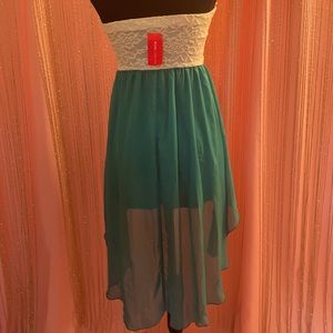 MUST GO!!! Strapless white lace/Green high low dress NWT- Small