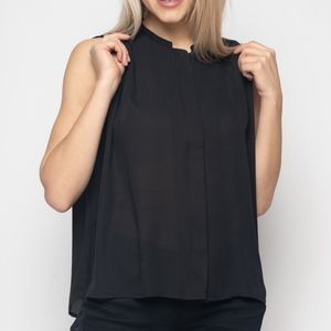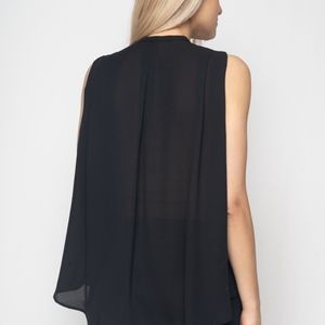 Chiffon, swing and in a semi-sheer black! This soft, button down top will go perfectly with jeans for a casual chic look or dressed up with a beautiful skirt for any special occasion. Have you seen how perfectly it pairs with the denim ruffle midi?