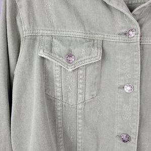 MUSTARD SEED Distressed Detail Cropped Denim Jacket with Chest Pockets Green M