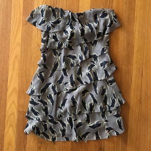 MUSTARD SEED FEATHER RUFFLE STRAPLESS DRESS