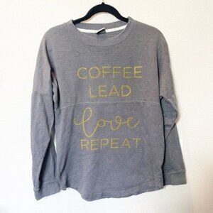 MV Sport Coffee Lead Love Repeat Oversized Sweatshirt Small Gray Cotton Blend