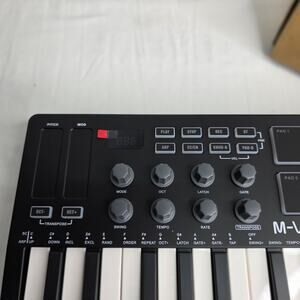 25 speed-sensitive keys, 8 RGB backlight speed-sensitive pads, 8 distributable rotators, 2 Capacitive touch bar sound high to all music studio plugins for mixing and adjusting synthetic control.