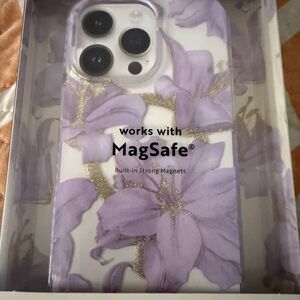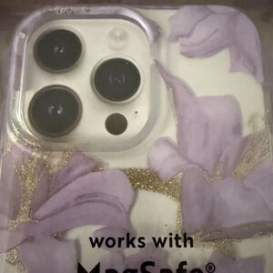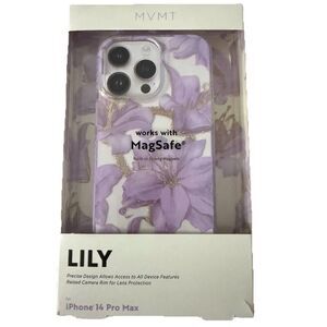 Here is a MVMT Apple 14 Pro Max iPhone MagSafe Case Purple Lily Metallic Gold Accents NEW