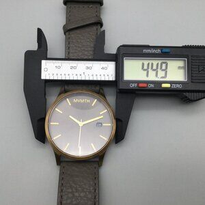 MVMT Classic Watch Men 45mm Gold Tone Date Gray Leather Band New Battery