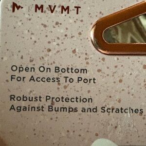 MVMT Silicone AirPods case designed to protect Apple AirPods (1st and 2nd generation) Offers robust protection against bumps and scratches. Wireless Charging Compatibility: Works with wireless charging. Open bottom design allows access to the charging port. Made of silicone. Features a matte finish black with gold specs