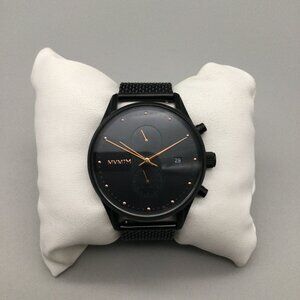 MVMT Voyager Chronograph Watch Men 42mm Black Date Mesh Band BOX New Battery