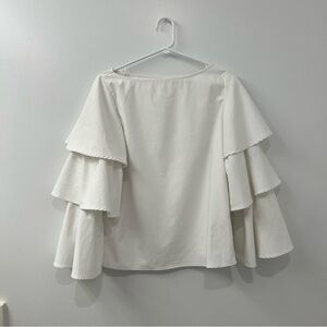 MVN Tiered Ruffle Bell Sleeve Blouse. Size small. 100% polyester. Length: 26”