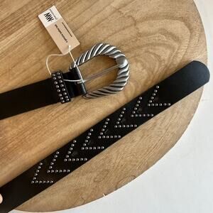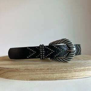 MW Black Genuine Leather Silver Studded Chunky Buckle Belt Size Small NEW