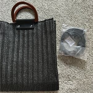 MW Most Wanted Black Straw Bag with Attachable Crossbody Strap