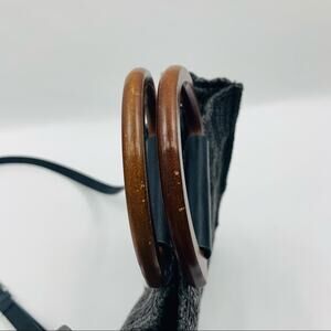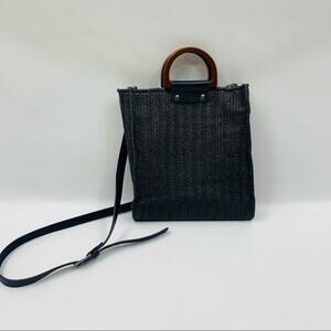 MW Most Wanted USA Wooden Handle Weaved Bag. Dark Gray Basket Weave bag with wooden handles. Removable Crossbody strap included.