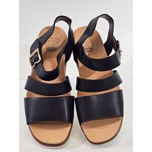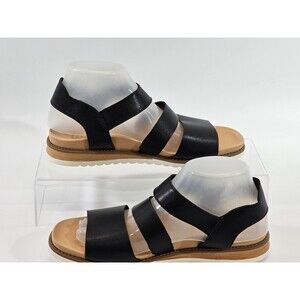MW Women's 8 Dr. Scholl's Island Glow Sandal Black Faux Leather Strappy Shoes