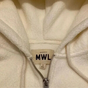 MWL Madewell Sherpa Zip-Front Drawstring Hoodie Sweatshirt Size M Cropped