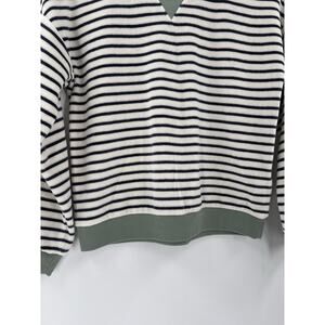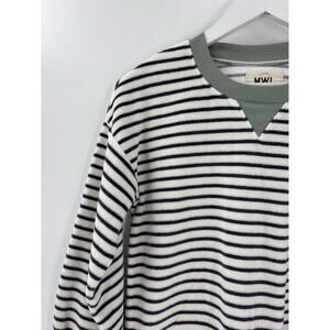 MWL Madewell Sweatshirt Womens XS Green White Velour Crewneck Striped Pullover