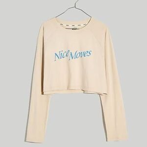 The fit: supercropped with relaxed raglan sleeves, it's printed with a "Nice Moves" graphic.