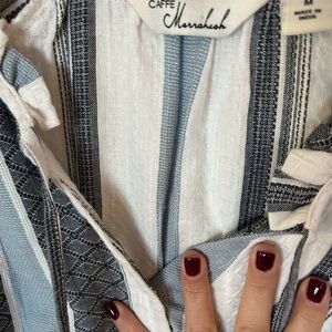 MWT Caffe’ Marrakesh 3/4 sleeve dobby stiped 100% cotton pop over top