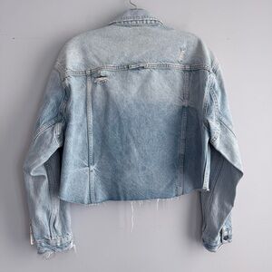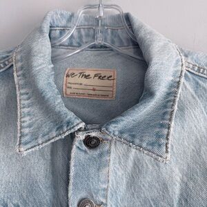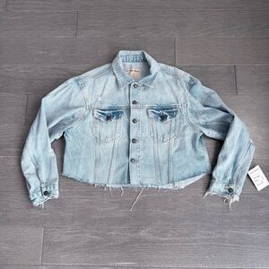 MWT Free People Amelia Slouchy Denim Jacket XS Distressed Cropped Blue Trucker