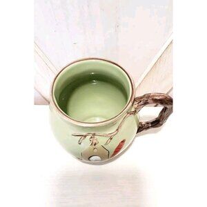 MWW Market Wren Bird Nest Eggs Green Feather Ceramic Mug Branch Handle