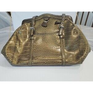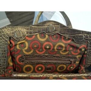 Gold hand bag is in great condition and is in the Alligator Style Pattern