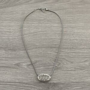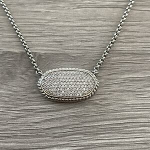 MX Signature Collection Pave Rhinestone Necklace Silver Tone 16" Hexagon Pendant