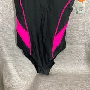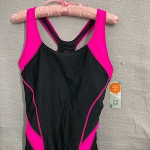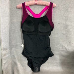 MY CHARMO Women Padded Bra Bathing Suit One Piece Sz SMALL Pink Black UPF 50+