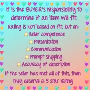 @just_mei We can only use 500 characters per comment so I have to work with that so it does seem a bit long, that's why. You are taking the first step in being a serious seller & posher in general! I am very proud of you to ask this and want to follow the guidelines. They are in place to protect both sellers & buyers and if you want to be taken seriously it's very important to be compliant. What a way to start the day! XOXOXOXO Plz feel free to ask me anything! Xo