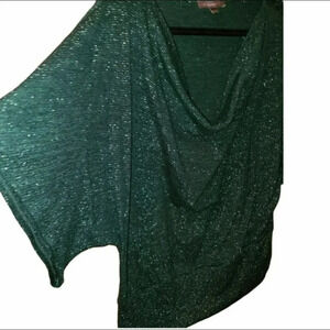 MY COLLECTION Women's L Green Sparkle Cowl Neck Dolman Sleeve Top