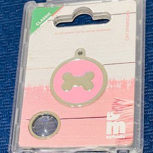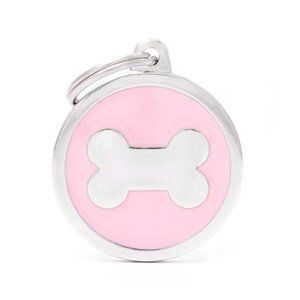 MY FAMILY BIG PINK CIRCLE BONE ROUND CHROME ENGRAVABLE DOG ID TAG CLASSIC ITALY