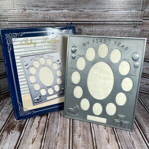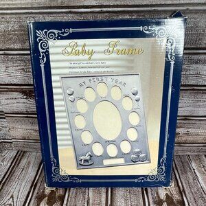 MY FIRST YEAR Baby Photo Picture Frame Brushed Nickel 13 Photo Openings NOB NEW