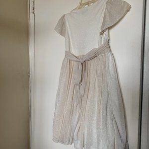 MY MICHELLE GIRLS BEADED IVORY Gold Sparkles DRESS WITH UNDERSKIRT SIZE 8