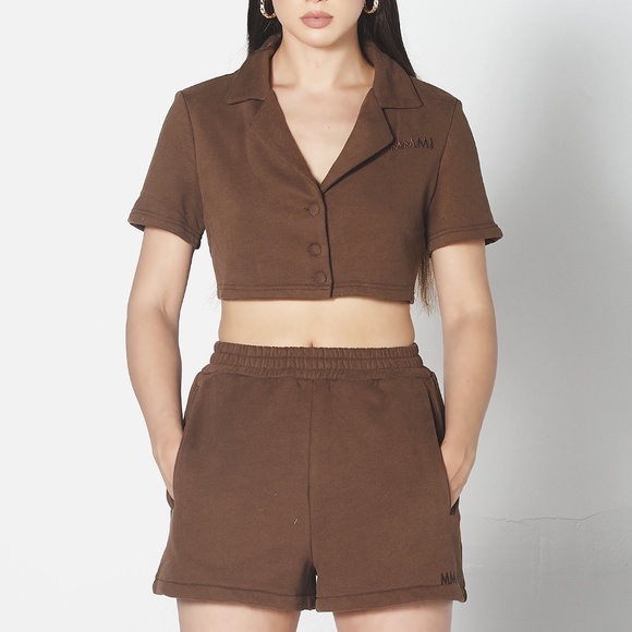 MY MUM MADE IT JERSEY COLLARED CROP TEE AND SHORTS