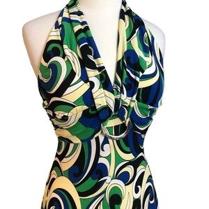 MY Michelle Y2K 2000s Groovy Swirl Print Halter Dress Size Small